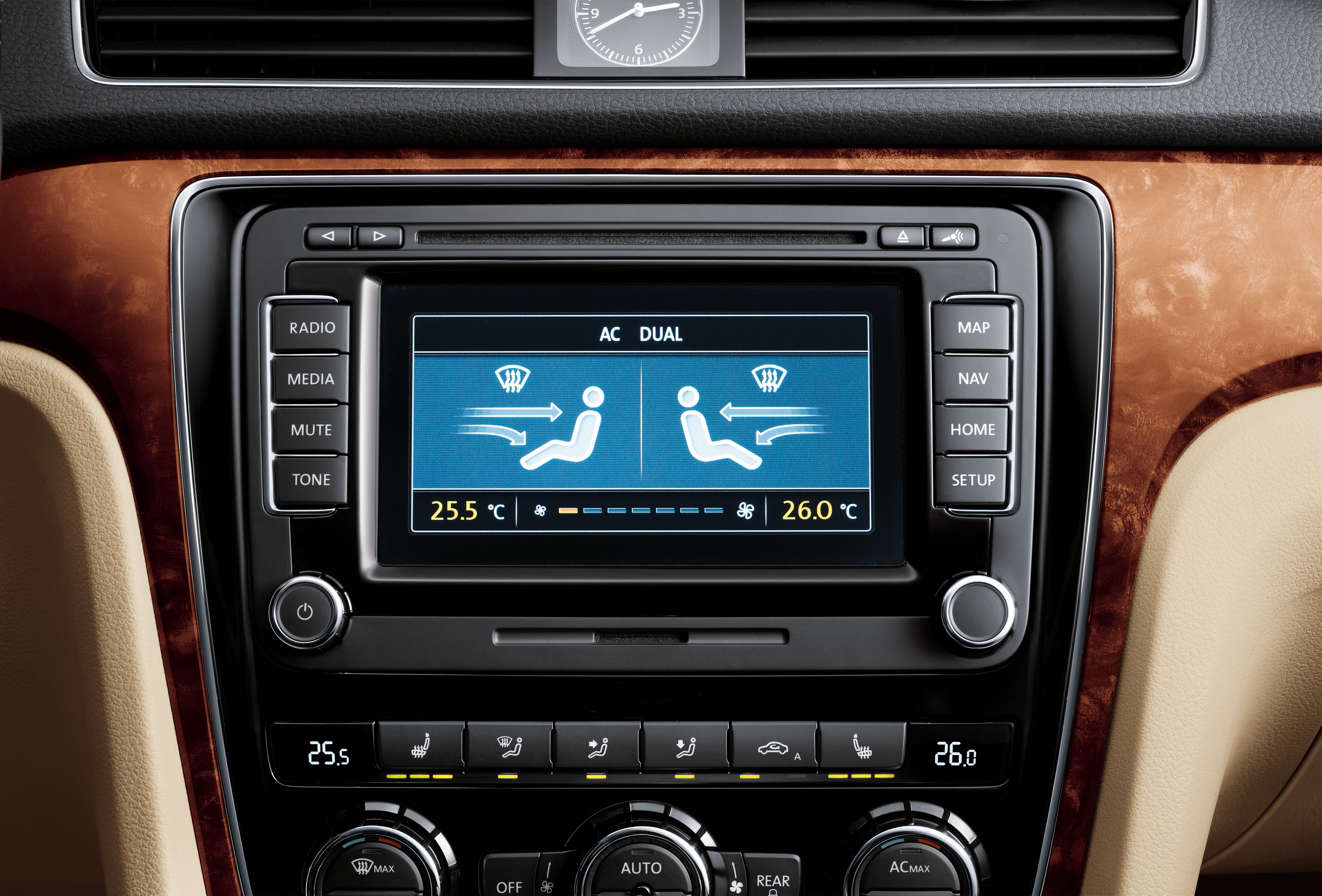 帕萨特悉心配备了Climatronic双温区全自动空调,通过遍布车身内外的传感器感知温度差异及日照强度,精确调节送风量。左右两个独立温区的设置,让驾驶员和前排乘客各自享受适合自己的温度,温控精度更是精确到0.5℃。而后排乘客还享有独立的空调中央出风口,还可通过中央通道处的调节旋钮设定自己喜好的温度和风量,尽情享受“量身定做”的宜人旅程。同时,帕萨特后排车窗及后风挡配备的绿色隔热隐私玻璃,绿色加深35%,为车主贴心阻挡车外高温和紫外线。