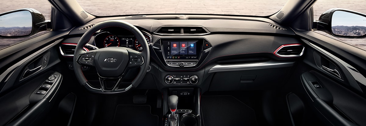 创界的内饰承袭雪佛兰家族经典的飞翼式双座舱设计,其中RS车型采用了个性化红黑配色的运用,酷感十足;Redline内饰为全黑色,虽然少了些RS车型上的红色装饰,但运动感依旧。中控台中央内嵌的8英寸中控显示屏以晶钻六边形包边,除最低配车型外MyLink+智能车载互联系统均为标配。