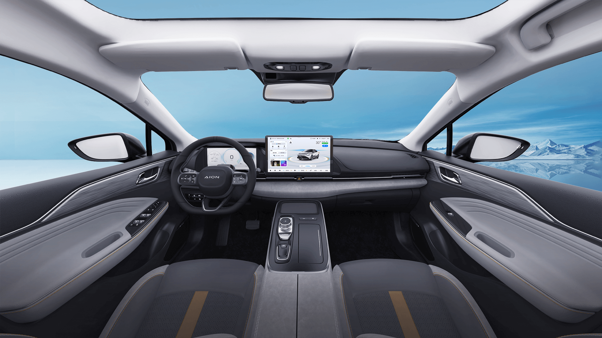 新车的中控台整体采用了灰、黑以及银色装饰条相搭配的设计,并取消了大部分物理按键。与此同时,现款车型的双联屏被悬浮式的中控屏幕替代,车机系统也采用了全新的UI设计。值得一提的是,AION S Plus还将配备1.9平方米的全景天幕,其继承了第三代柔性电致变色技术,能够隔绝99.9%的紫外线。