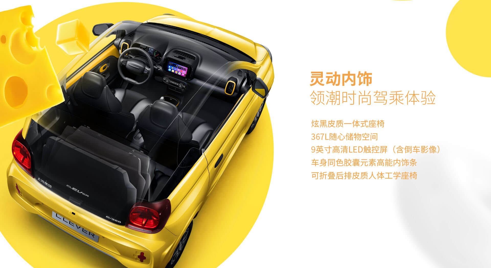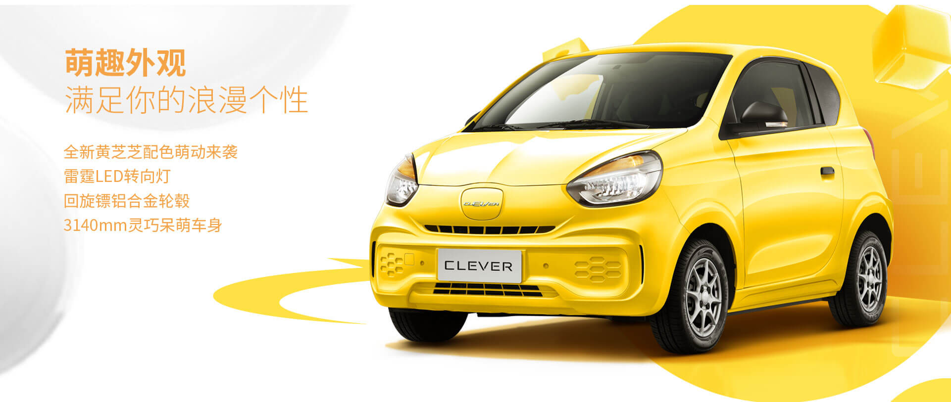 科莱威CLEVER元气啵啵版车型在整体设计层面将会与现款在售车型保持一致,新车将会推出全新的黄芝芝车身配色,同时,一款多辐式铝合金轮圈将会出现在新车之上。