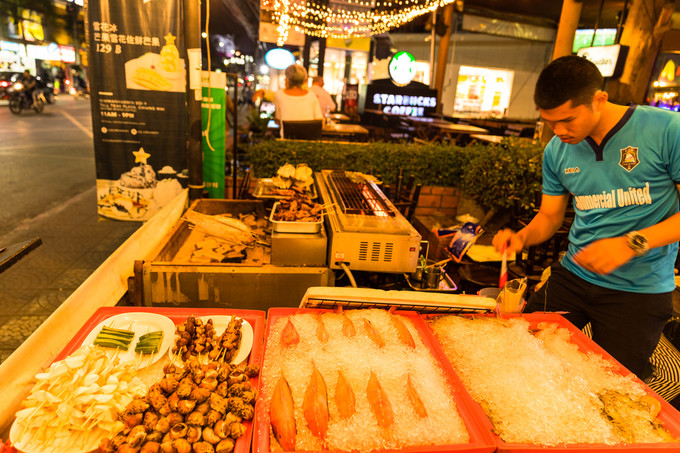 明明个种小吃已经很饱,还是没忍住,看到烧烤摊又坐下来,啤酒,烤虾,烤鱼,烤海螺什么的又吃了一通。
