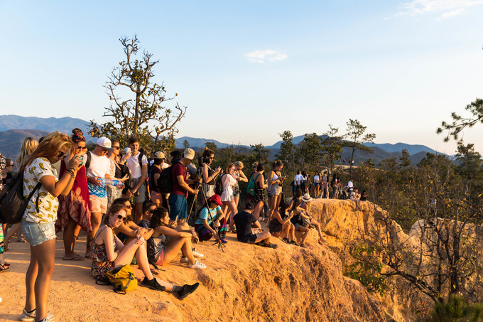 黄昏时分去大峡谷看日落,就在靠近二战桥的路边,很多摩托车和汽车停在路边,爬上一个不高的山坡就到了看日落的地方,也是西方人居多,相比较看日出的云来就很少西方人,也许是要门票的缘故。山顶有些地方非常陡峭,而且狭窄,有些地方只能一个人通过,要特别小心,看太阳在大峡谷落下,也是很好的体验。