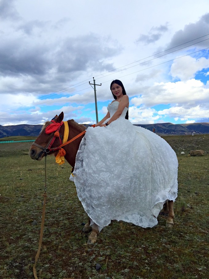 早就听小伙伴说要去骑马,路边骑马25,换衣服10块。我们立马下车,换上藏服,等我换好时,马儿已经被大家都骑走了。剩下一头牦牛,我只能骑牦牛了…我被自己都笑哭了。藏民也笑的不成。