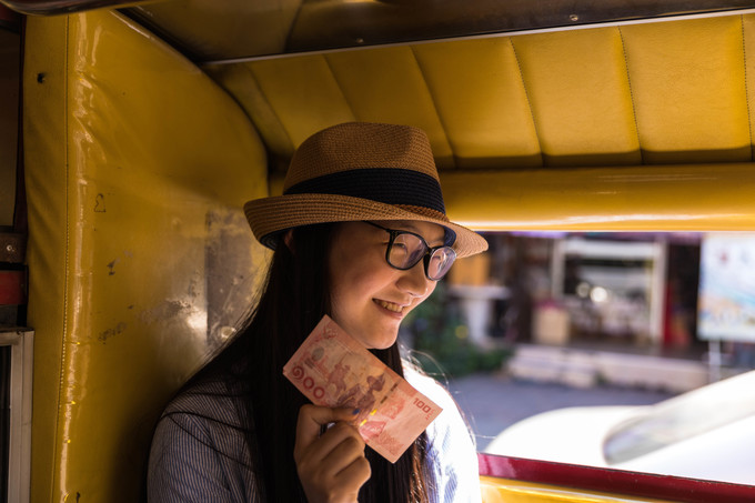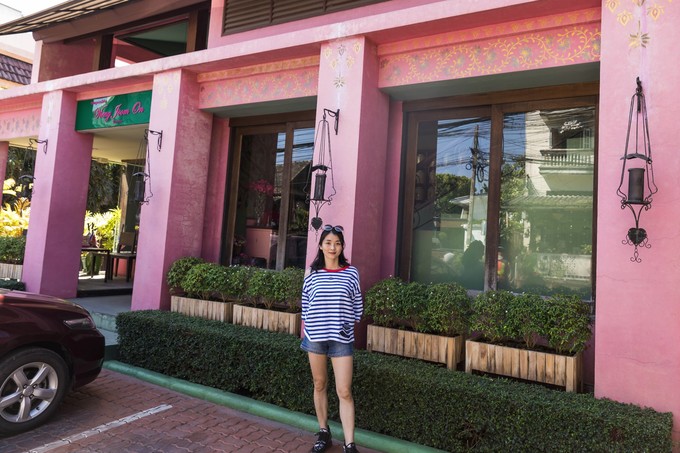 午饭时间,打算去粉红茶馆(Vieng Joom On Teahouse),问嘟嘟车要200b,打了一辆双条车去,三个人100b,省钱是自由行第一要素,哈哈,多尝试一下当地的交通方式也是极好的体验。