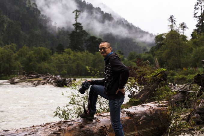 继续前行,景色开始有很大的变化,针叶林过度成阔叶林,让人不敢相信的是居然能看到只有热带才有的芭蕉树,还有野草莓,我们边吃边行,先到亲水叠瀑布观景点,然后是仓秀措景区,往里走有一观景楼,到楼上看风景