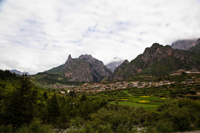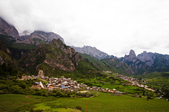 到达的时候天气阴沉,时隐时现的远山下,散落着高低错落的村寨。被雨水清洗过的植被丰润而清亮,整个峡谷绿意盎然。看看四周醉人的绿色,来几下深呼吸,让那混合着草香、花香的空气充满你的胸腹,沁人心脾。