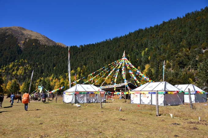 一路边走边拍,十二点半左右到飞机坪,飞机坪是一个很大的坝子,它的尽头有家帐篷客栈,这里可以住宿。