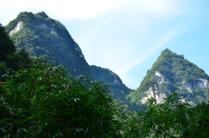 黑山谷风景区原始生态风景由峻岭、峰林、幽峡、峭壁、森林、竹海、飞瀑、碧水、溶洞、仿古栈道、浮桥、云海、田园、原始植被、珍稀动植物等各具特色的景观组成。