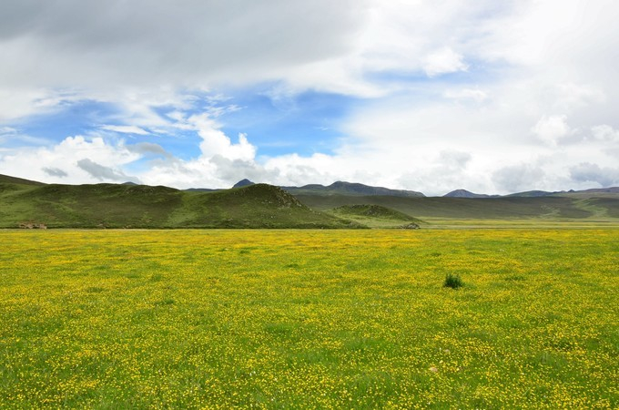 毛垭大草原位于四川省甘孜州理塘县县城以西,群山的环抱之中,如海的草原郁郁葱葱,这就是毛垭大草原。